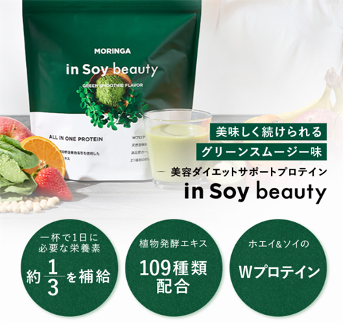 ダイエットプロテイン inSoybeautyはスーパーフードモリンガ配合で栄養満点