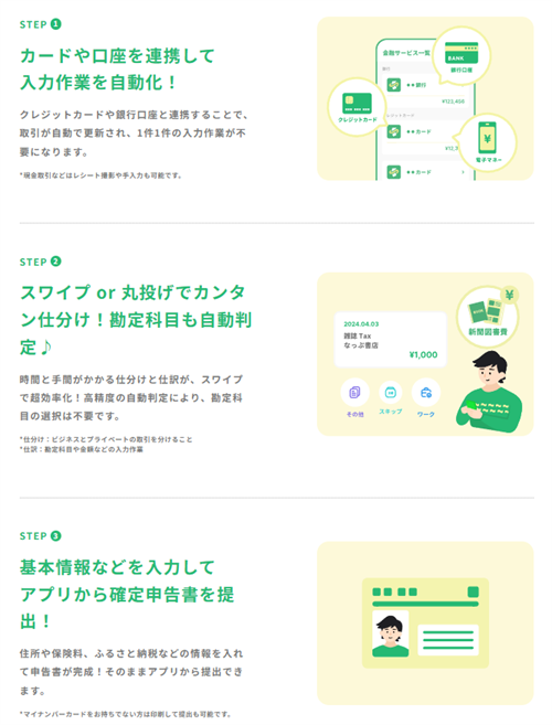 初心者にもわかりやすい設計と、ストレスの少ない操作感がタックスナップの大きな魅力です。